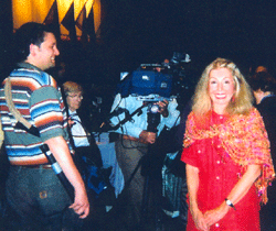 Waiting for Larry--Janice Law on the CNN set where Larry King has interviewed history's famous personalities. |