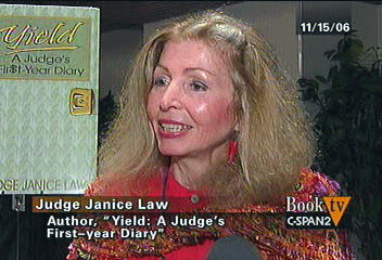 Jan. 5: Hastings Bookstore, 2711 61St. Galveston, 2-5 p.m. signing Jan. 7: 1:25 a.m. CSpan2 BOOKTV interview re: Yield Jan. 25: Bellaire Exchange Club, noon, Pepe Restaurant, 5213 Cedar St. Bellaire, Tx. Jan. 26: Southern Arizona Estate Planning Council; signing, Westward Look Resort, Tucson Jan. 27: Midsummer Books, 2309 Mechanic Row, Galveston, 1-3 p.m. signing Feb. 7: Sugarland Exchange Club, speaker, 7 a.m. Sweetwater Country Club, 4400 Palm Royale Blvd, Sugarland, Texas Feb. 11: 8:56 p.m. CSpan2 BOOKTV interview re: Yield Feb. 12: 1:55 a.m. CSpan2 BOOKTV interview re: Yield Feb. 13: Memorial Exchange Club, speaker, 7 a.m. (Houston) Brenner's Steak House, 10911 Katy Frwy. Feb. 15: Houston Bar Assn., 7:30 a.m. Solos Supporting Solos, Wortham Tower Cafeteria, 2727 Allen Pkwy @ Waugh Feb. 25: 3:10 p.m. CSpan2 BOOKTV interview re: Yield Feb. 28: Friendswood Rotary, speaker, noon, Village on the Park, 400 E. Parkwood Ave, Friendswood March 11: 10:55 a.m. CSpan2 BOOKTV, interview re: Yield March 13: 12:35 p.m., Guest author, "Viewpoint" with MyrDean, Radio WRVC/AM, Huntington, W.Va [download] March 21-25: VA Book! 13th annual Virginia Festival of the Book, Charlottesville; panelist, signing. March 22, 6 pm PANEL: Memoirs Come in Different Shapes and Sizes: Gloria Schrager, Medicine, Matzoh Balls and Motherhood; Rachel Norment, Guided by Dreams; Marylys Wills, A Circus Without Elephants; Janice Law, Yield: A Judge's Fir$t-Year Diary; Phillip Gordon, Cherubs in the Land of Lucifer. April 10: Rotary Club of Galveston Island, speaker, noon, San Luis Hotel, 5222 Seaweall April 17: Conroe Rotary, speaker, noon, Convention Center, 9055 FM 1484, Conroe, TX April 20, 21: Southern Kentucky Book Fest, panelist, signing, Bowling Green, Ky. April 25: Hobby Airport Exchange Club, speaker, 6 p.m. Hobby Marriott Hotel, 9100 Gulf Frwy May 17-20: Ann Arbor Book Festival (Michigan); faculty/speaker Writers Conference; signing May 18: Ann Arbor Book Festival, 9-10:30 a.m. Judge Janice Law faculty/teaching: Writing Memoir. May 19, 12:30-1:30 p.m. Ann Arbor Book Festival, interview, reading. Register at www.aabookfestival.org June 20; Rotary Club of Galveston, speaker, noon, Fisherman's Wharf Restaurant, Pier 22, 2200 Harborside Dr. July 26: Woodlands Rotary, speaker, noon, Woodlands Conference Center & Resort, 2301 N. Millbend Dr., The Woodlands, Tx. Sept. 8: Moody Methodist Church Book Club, speaker, noon, Galveston Sept 10: Book Club, Moody Methodist Church, speaker, 6:30 p.m. Galveston Sept. 28: Religion Newswriters Annual Conference, speaker/panelist 8 a.m. Breakfast, Menger Hotel, San Antonio Sept. 30: featured author, American Pen Women Book Sale, 1-5 p.m. The Washington Club, 15 Dupont Circle NW, Washington, D.C. Oct. 13: speaker, 1 p.m. National League of American Pen Women, D.C. Chapter, Pen Arts Bldg, 1300 17th St. NW, Washington, D.C. Oct. 18: Michigan Bar Association, recording Continuing Legal Education (CLE) program, Detroit October 26: A Novel Night-Author reception, featured author, St. Petersburg Times Festival of Reading, Florida October 27: speaker, St. Petersburg Times Festival of Reading www.festivalofreading.com Nov. 1: 6:30-8:30 p.m.National Press Club, Book Fair & Author Night gala, featured author, Washington, D.C. www.press.org Nov. 3: Texas Book Festival, Award Ceremony, Violet Crown Award finalist, 3-4 p.m. State Capitol, Austin, Texas; Capitol Extension Room E2.030. See http://www.texasbookfestival.org/Calendar.php http://www.writersleague.org/contests/vca.html Nov. 19: Guest Author,"Viewpoint" with hostess MyrDean, Radio WRVC/AM, Huntington, W.Va. [download] Nov. 29: 5:30 to 7:30 p.m., featured author, University Club 18th annual Meet the Author Night and Book Fair, 1135 Sixteenth St NW, Washington, DC