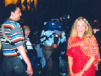 NOT QUITE--Janice Law poses on the Washington, D.C. set of CBS/TV News long running Sunday newsmaker program Face the Nation with host Bob Schieffer. The visit was part of a 2008 press club tour.