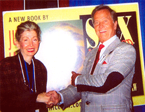 FRIENDLY PERSUASION--Popular 1950s-1960s singer Pat Boone chats with Judge Law about her book at a conference.