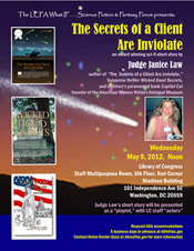 May 9: Library of Congress, Noon, Madison Building, 6th Floor, Washington D.C. "The Secrets of a Client Are Inviolate"--(Short Story), and AWWNM Update