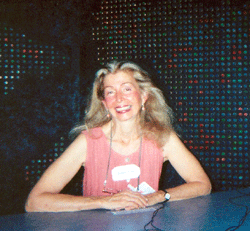 Waiting for Larry--Janice Law on the CNN set where Larry King has interviewed history's famous personalities. |